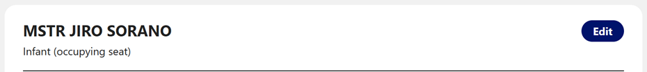 The passenger type will be displayed as "Infant (occupying seat)"